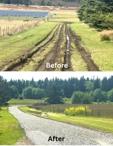 A much-need new gravel road was installed at Greenbank Farm to facilitate farmers’ access to fields + pastures.