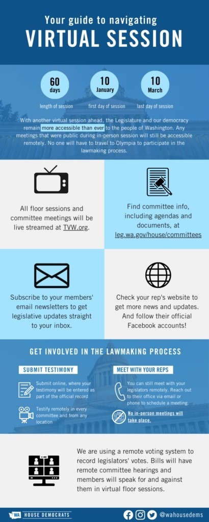 There are new ways that you can take part in the 2022 session of the Legislature, and I’m especially happy about how this will help the people of the 10th District. Depending on where you live, it could take two or three hours—each way—to fight traffic on I-5 to get to Olympia.