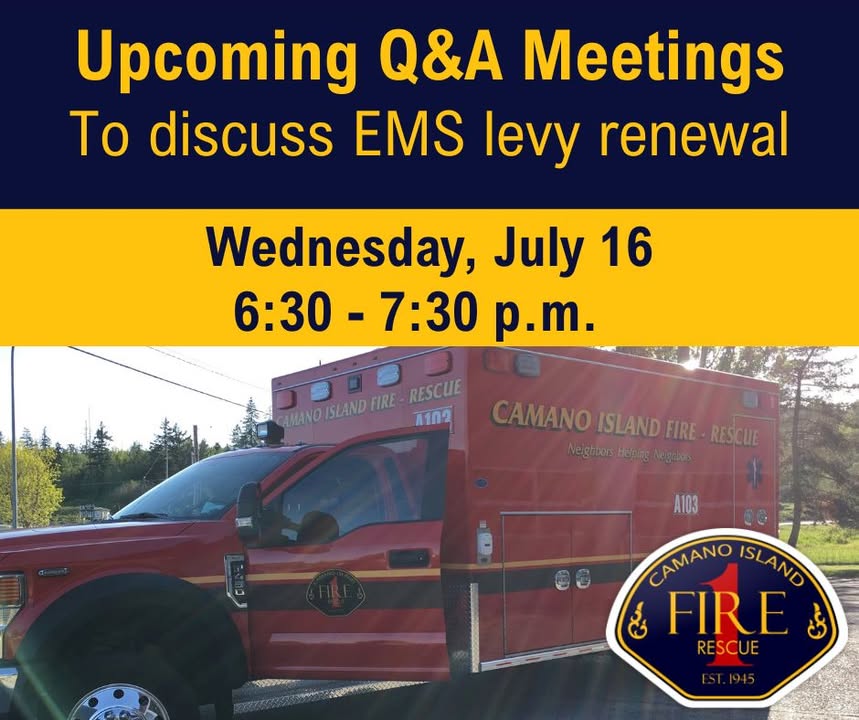 EMS calls make up 68% of Camano Fire’s responses. Learn what the upcoming EMS levy renewal means for medical response times, equipment, and staffing—directly from Chief Jason Allen, who will be happy to answer questions.