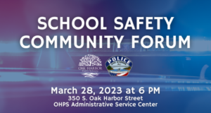 The Oak Harbor Public Schools will be hosting a school safety community forum with Oak Harbor Police Department to provide information about school safety planning, collaboration with law enforcement and ongoing efforts to keep students and staff safe in our schools.
