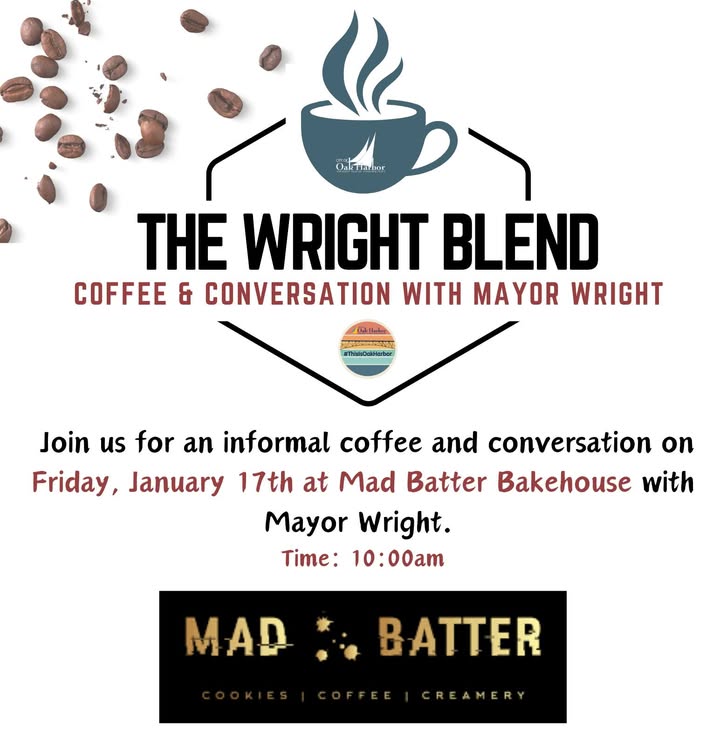 Join us on January 17th at Mad Batter Bakehouse on Pioneer Way for our first Coffee and Conversation with Mayor Wright.