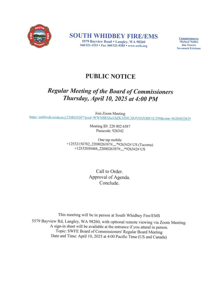 SOUTH WHIDBEY: Fire/EMS board meeting, Apr. 10, 2025 (FB)