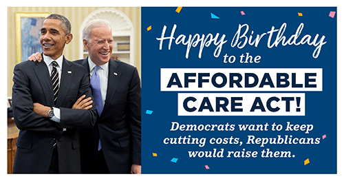 When democrats win – We ALL win! This week was the 12th anniversary of the passage of the Affordable Care Act, which (among several life-changing, life-saving changes) lowered health care costs for millions and made it easier for Americans with pre-existing conditions to get coverage. Since then, President Biden and Democrats’ American Rescue Plan has built on the success of the ACA.