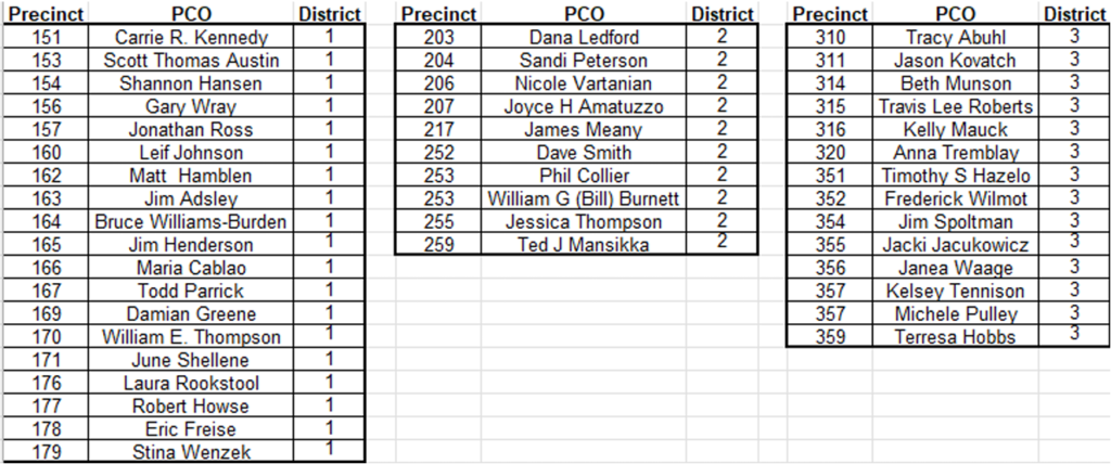 Everyone needs to have eyes on the close of the current election so not a lot to report this month. I will share the email recently sent to the State Committee from Chairman Jim Walsh that shows what the WAGOP is doing to help PCOs