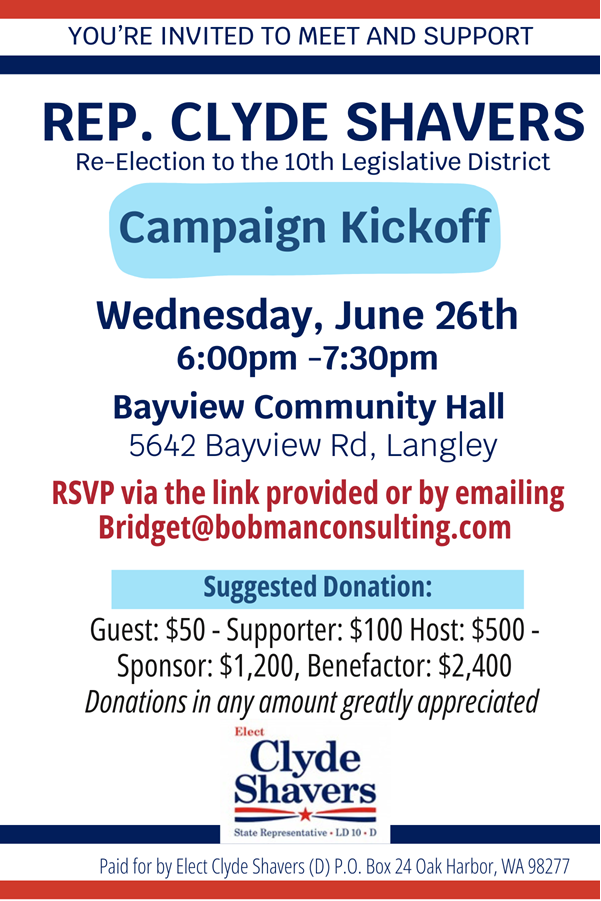 Join us for an opportunity to listen to local candidates discuss issues that are of significance to the Clinton and South Whidbey community.