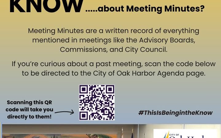 Meeting minutes are published on the Agenda Center at this link or by scanning the QR code. https://www.oakharbor.gov/AgendaCenter