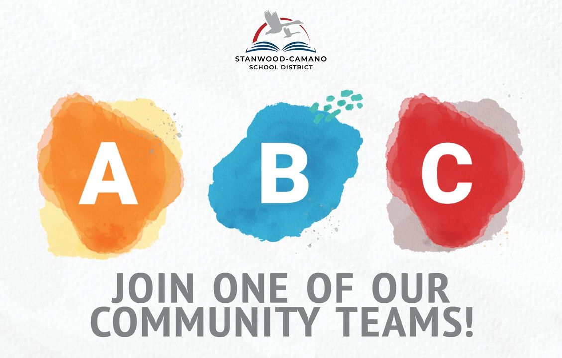 Learn more about each team’s specific areas of focus, upcoming meeting time/day/location, and how you can sign up on our ABC Team page: https://www.stanwood.wednet.edu/get-involved/abc-teams