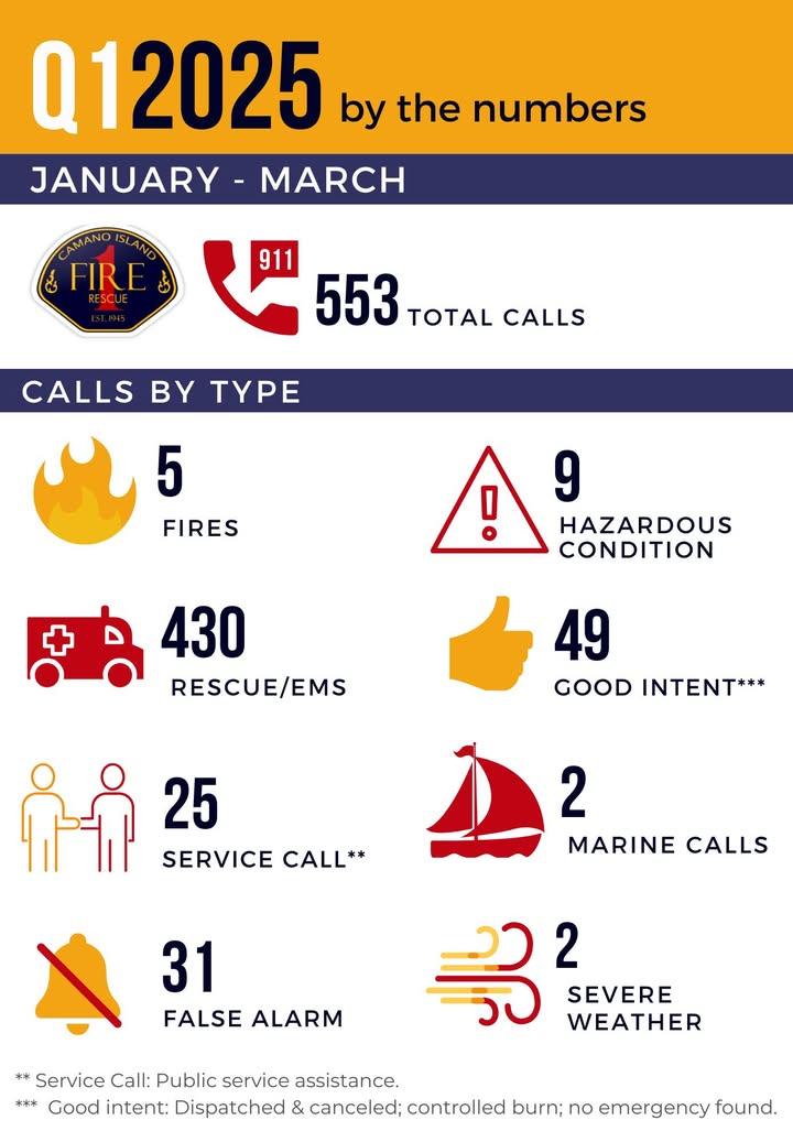 CAMANO: Fire and Rescue calls for the first 3 months of the year were pretty similar to 2024