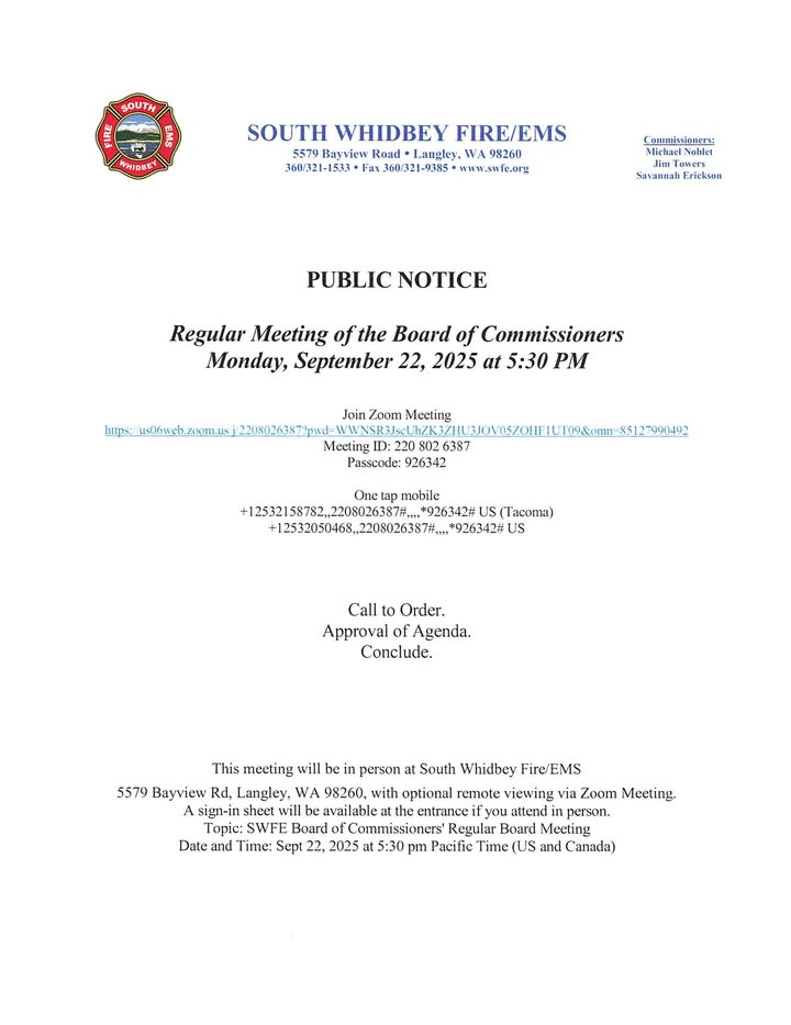 SOUTH WHIDBEY: Fire/EMS District Meeting Public Notice