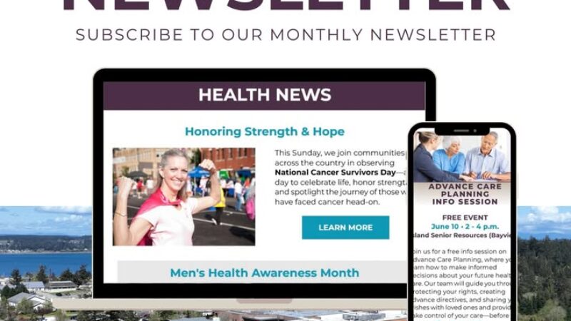 WhidbeyHealth has a new monthly newsletter! New subscribers can look forward to receiving valuable health insights, updates on our services, and information about upcoming community events. We believe that informed patients are empowered patients, and we are dedicated to equipping you with the knowledge you need to make the best decisions for your health and well-being.