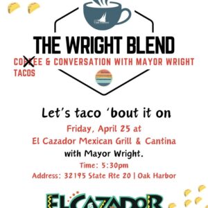 You spoke, we listened! We’re taking “The Wright Blend-Coffee & Conversation with Mayor Wright” to after hours! El Cazador has agreed to host us in April for “Tacos & Conversation.” Mayor Wright will be serving up answers to your questions, and El Cazador will be serving up tacos to spice...
