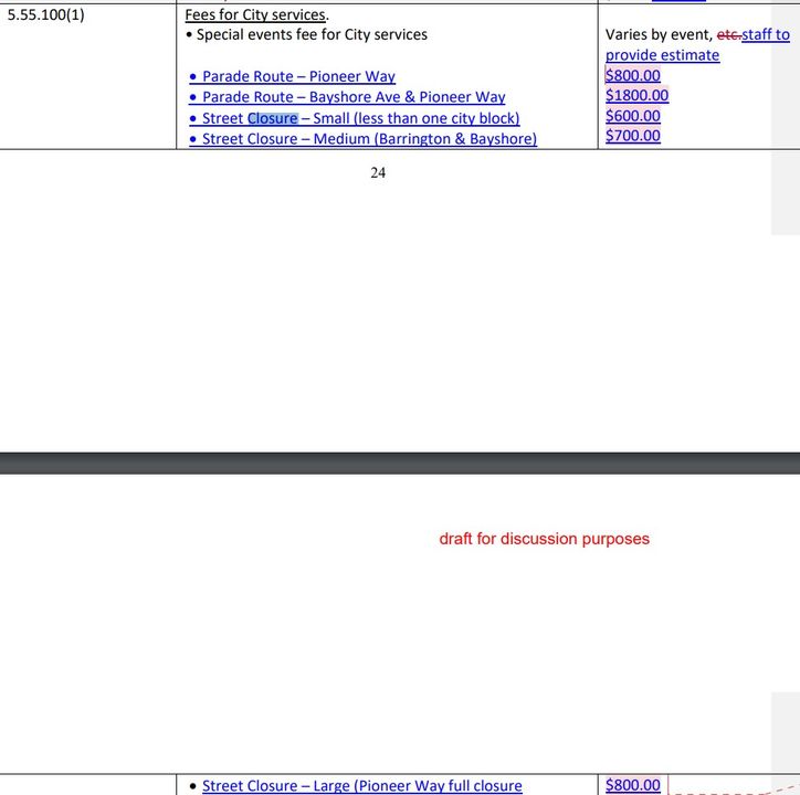 The city of Oak Harbor is looking into recovering some costs for street closures. Things like parades, street fairs, etc…. Things like overtime staffing, police, cleanup all add up etc…