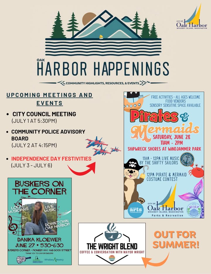 5. The Wright Blend-Coffee & Conversations with Mayor Wright is going on summer break. See you in the fall, but if you have questions for Mayor or staff, send us an email at info@oakharbor.org